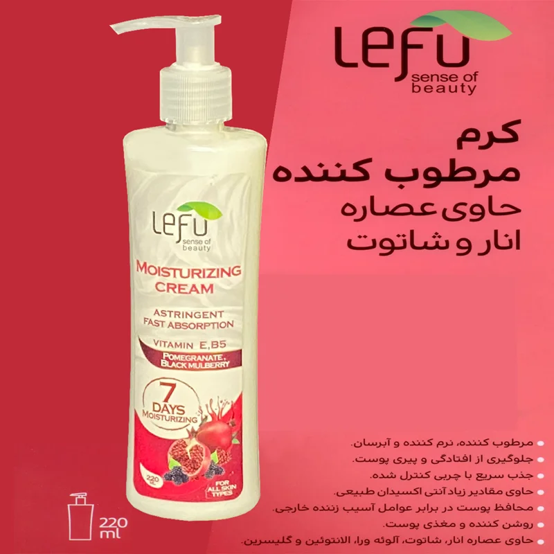 کرم مرطوب کننده لفو حاوی عصاره انار و شاه توت جهت آبرسانی ویژه به پوست .
