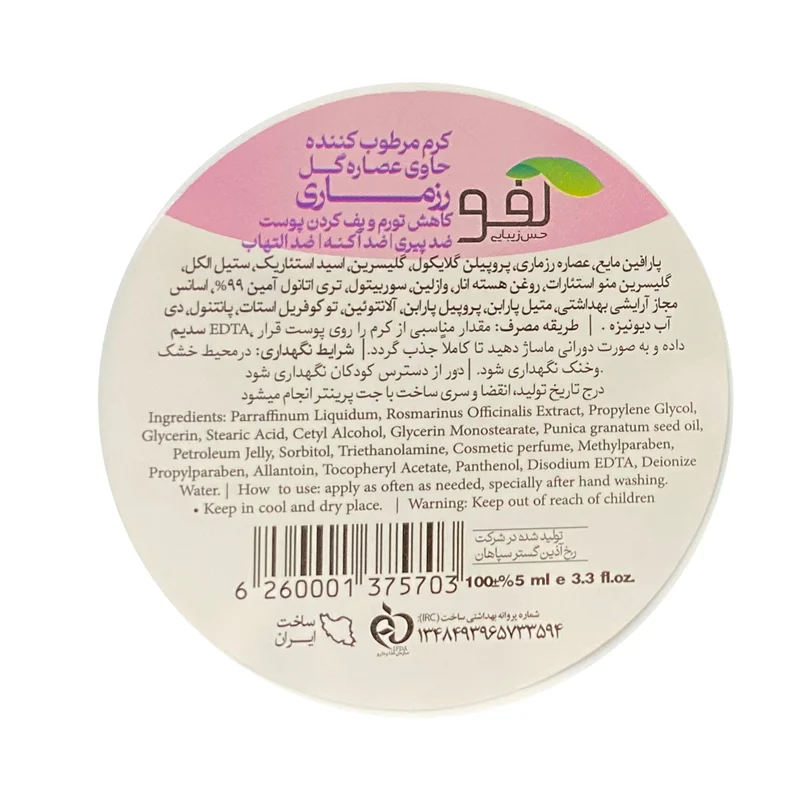کرم مرطوب کننده دست و صورت لفو حاوی عصاره روزماری جهت آبرسانی ویژه به پوست .