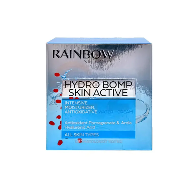 ژل آبرسان کاسه ای رینبو مدل هیدرو بمب یکی از بهترین مرطوب کننده و آبرسان های خارجی می باشد دارای ترکیبات اسید هیالورونیک و مواد هیدراته کننده با خاصیت آبرسانی به سلول های پوستی، ضد پیری و ضد چروک بوده و سرعت قابل توجهی در زمینه از بین بردن خشکی پوست و بازگرداندن شادابی پوست دارد. علی رغم بافت سبکی که این واتر ژل دارد؛ اما تا 24 ساعت آبرسانی پوست را تامین میکند و همین باعث شده است که بسیاری از خانم ها از آن به عنوان زیرساز در آرایش خود استفاده کنند.