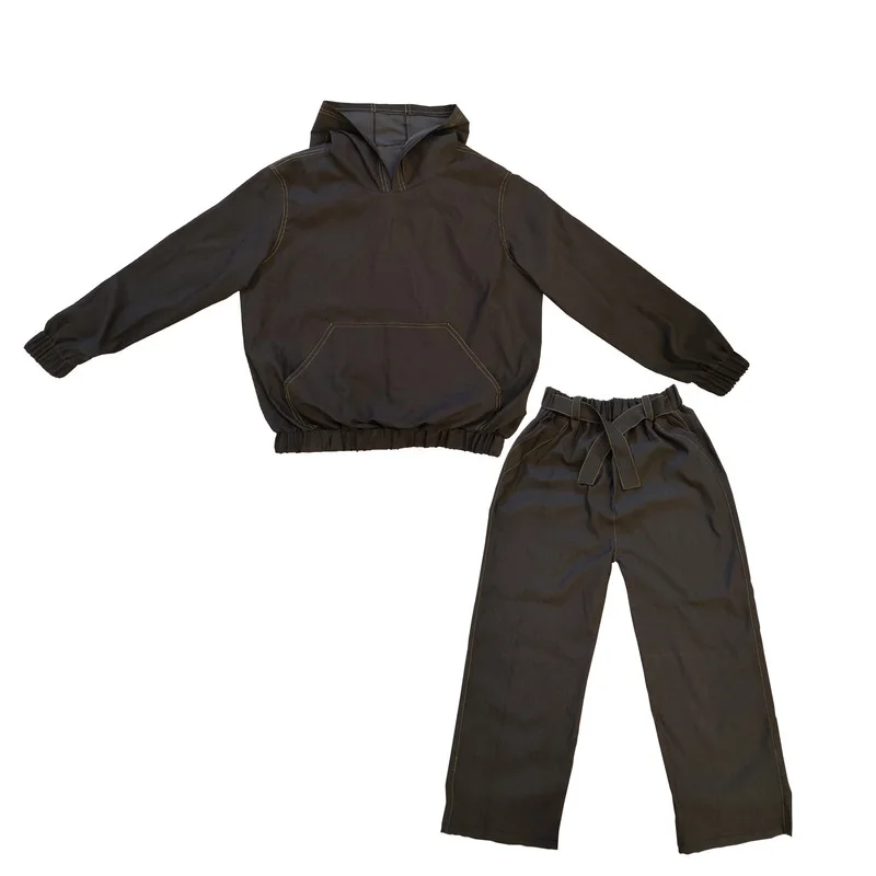جنس پارچه نیل یا طرح جین کاغذی بسیار نرم و لطیف با رنگ جذاب میباشد.جیب برزگ یک تیکه جلوی هودی و کلاه مناسب و کاربردی میباشد. سایز و اندازه های کار در عکس ها درج شده مشاهده فرمایید.کش های کمر و دور مچ نرم هستن و اذیت نمیکنند.شلوار نیم بگ هستش و برای قد تا متوسط تا روی مچ پا و برای قد بلند تا بالای مچ پا قرار میگیرد.برای چهار فصل مناسب هست.