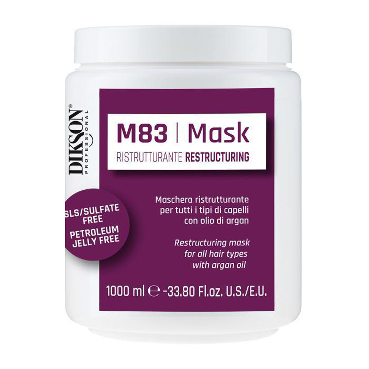 ماسک موی فاقد سولفات دیکسون مدل M83 ترمیم کننده ای غنی از آرگان با خواص بازسازندگی و احیا کنندگی مناسب انواع مو می باشد. آرگان ماده ارزشمند ماسک موی بازسازنده دیکسون مدل ام 83 می باشد. روغنی بسیار غنی از ویتامین E و اسید های چرب ضروری که خواص بی شماری برای حفظ سلامتی و شادابی مو دارند. ماسک M83 محصولی ایده ال برای انواع مو می باشد که با بهره گیری از این مواد مو را در مقابل عوامل آسیب رسان محافظت می کند و در انعطاف پذیری و براقیت مو ها نقشی کلیدی ایفا می کند.