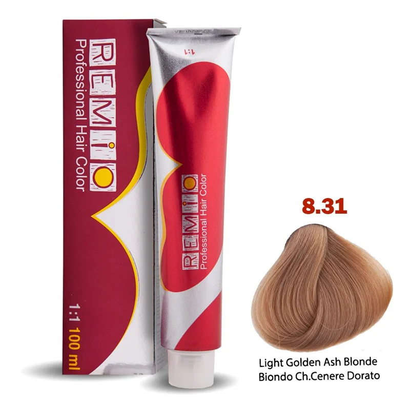 رنگ مو رمیو سری BEIGE شماره ۸.31 رنگ بلوند خاکستری روشن طلایی / REMIO