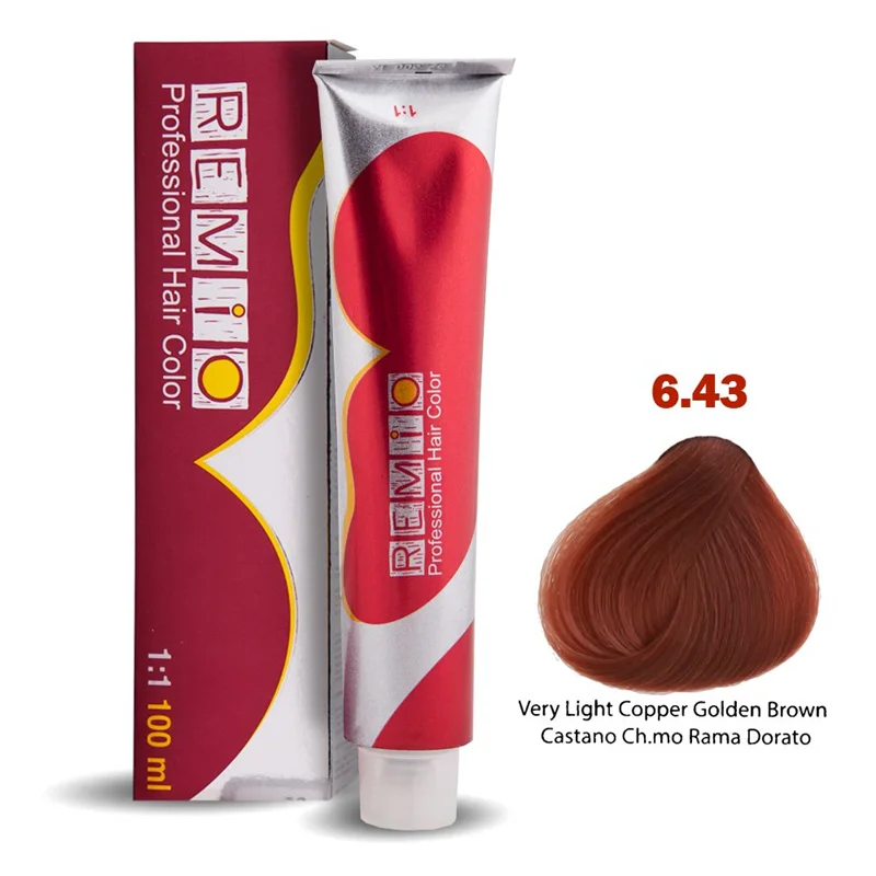 رنگ مو رمیو سری BROWN شماره ۶/43 رنگ مسی خیلی روشن قهوه ای طلایی / REMIO