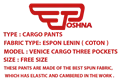 شلوار زنانه توشنا مدل کارگو ونیز سه جیب یکی از جدید ترین شلوارهای برند توشنا می باشد که در رنگ های مختلف تولید شده است.جنس پارچه این شلوار اسپان کتان کشی می باشد که یکی از بهترین نوع کتان کش بوده و همچنین مدل کارگو که دو جیب در کنار کمر و یک جیب جادار در قسمت زانو طراحی شده و از دیگر نقاط قوت این کار کمر آن بوده که به صورت تمام کش به همراه کمربند داخلی تولید شده است .