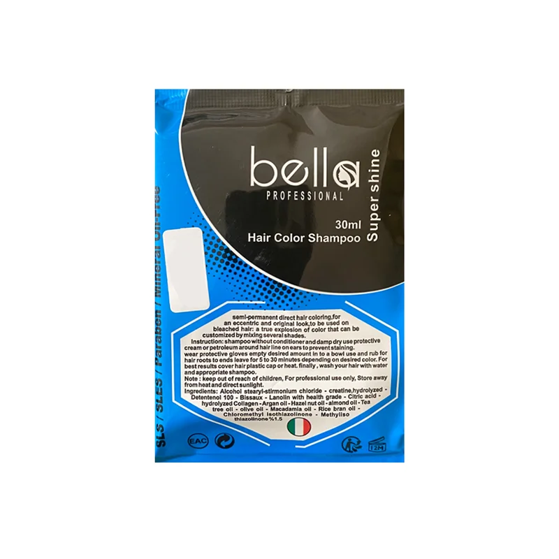 شامپو رنگ مو BELLA سری SUPER SHINE شماره 1005 حجم 30 میلی لیتر رنگ آبی درباری