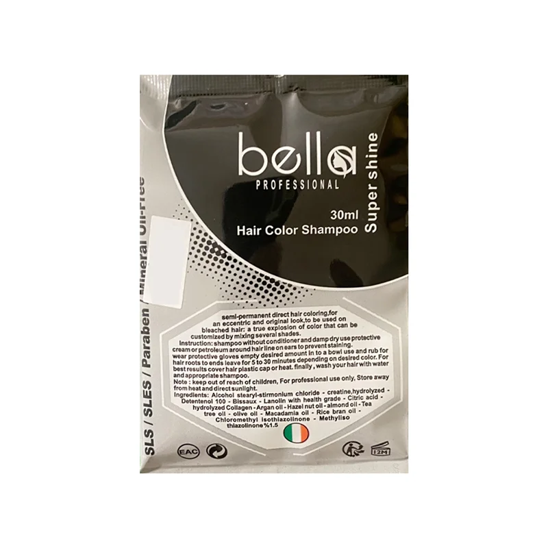 با شامپو رنگ مو BELLA سری SUPER SHINE، به موهای خود رنگی درخشان و بینظیر ببخشید. شماره 1001 با رنگ سفید هالوژنی، موهایتان را درخشان و آراسته میکند. حجم 30 میلیلیتر این محصول، کاملاً مناسب برای تغییر رنگ سریع و آسان است. جلوهای جذاب و خاص به موی خود دهید و زیباییتان را دوچندان کنید!