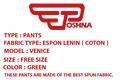 شلوار زنانه توشنا مدل ونیز رسمی یکی از جدید ترین شلوارهای برند توشنا می باشد که در رنگ های مختلف تولید شده است.جنس پارچه این شلوار اسپان کتان کشی می باشد که یکی از بهترین نوع کتان کش بوده و همچنین این مدل دو جیب در کنار کمر دارد و از دیگر نقاط قوت این کار کمر آن بوده که جلوی کار به صورت ساده و رسمی می باشد و پشت آن تماما کش می باشد.
