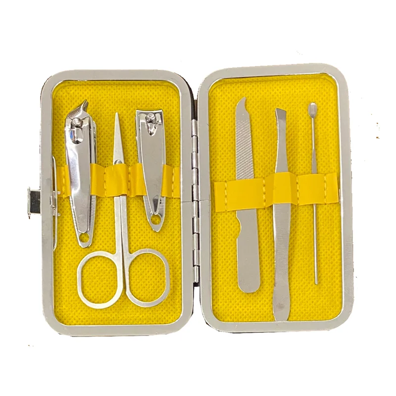- دارای سوهان ناخن،گوشه گیر،موچین،عقب زن،گوشت گیر،ناخن گیر و قیچی