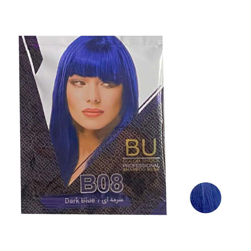 شامپو رنگ مو BU شماره B.0۸ حجم 30 میلی لیتر رنگ سرمه ای